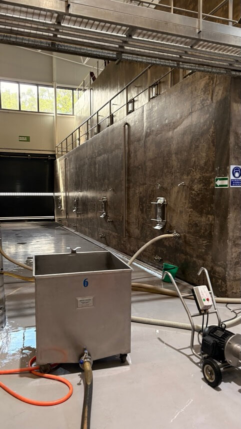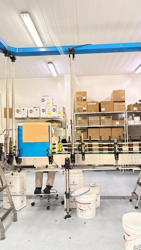 La visite est bien rythmée : on commence par la salle des cuves de fermentation, où l’on apprend les différences de traitement entre les vins rouges, blancs et rosés — température, durée, oxygénation… tout est passé en revue. Dans la pièce suivante, de grandes cuves en acier inoxydable côtoient des cuves en béton, vestiges du savoir-faire d’antan. On comprend alors à quel point l’équilibre entre tradition et technologie est important pour Aranjuez.